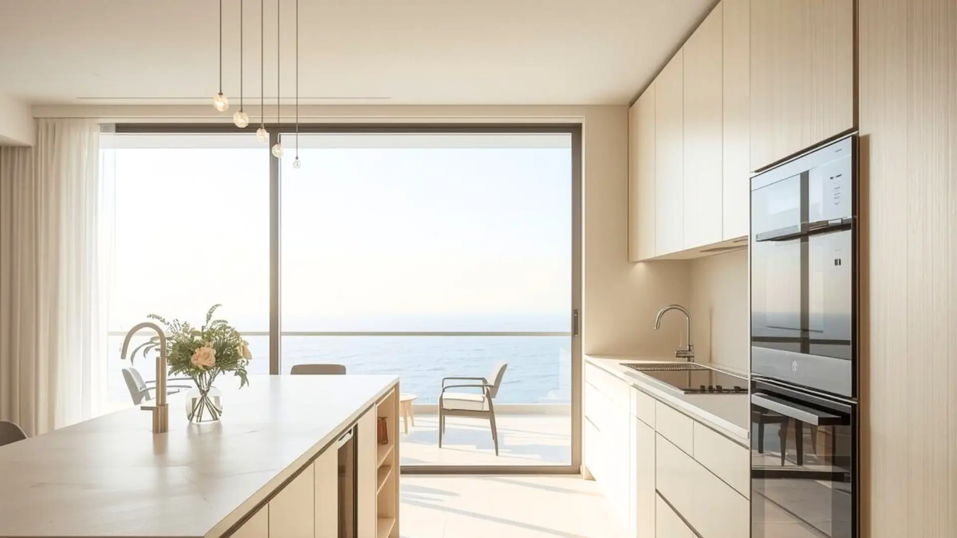 Bright first-line apartment with a beautiful sea outlook and a relaxed coastal feel throughout.