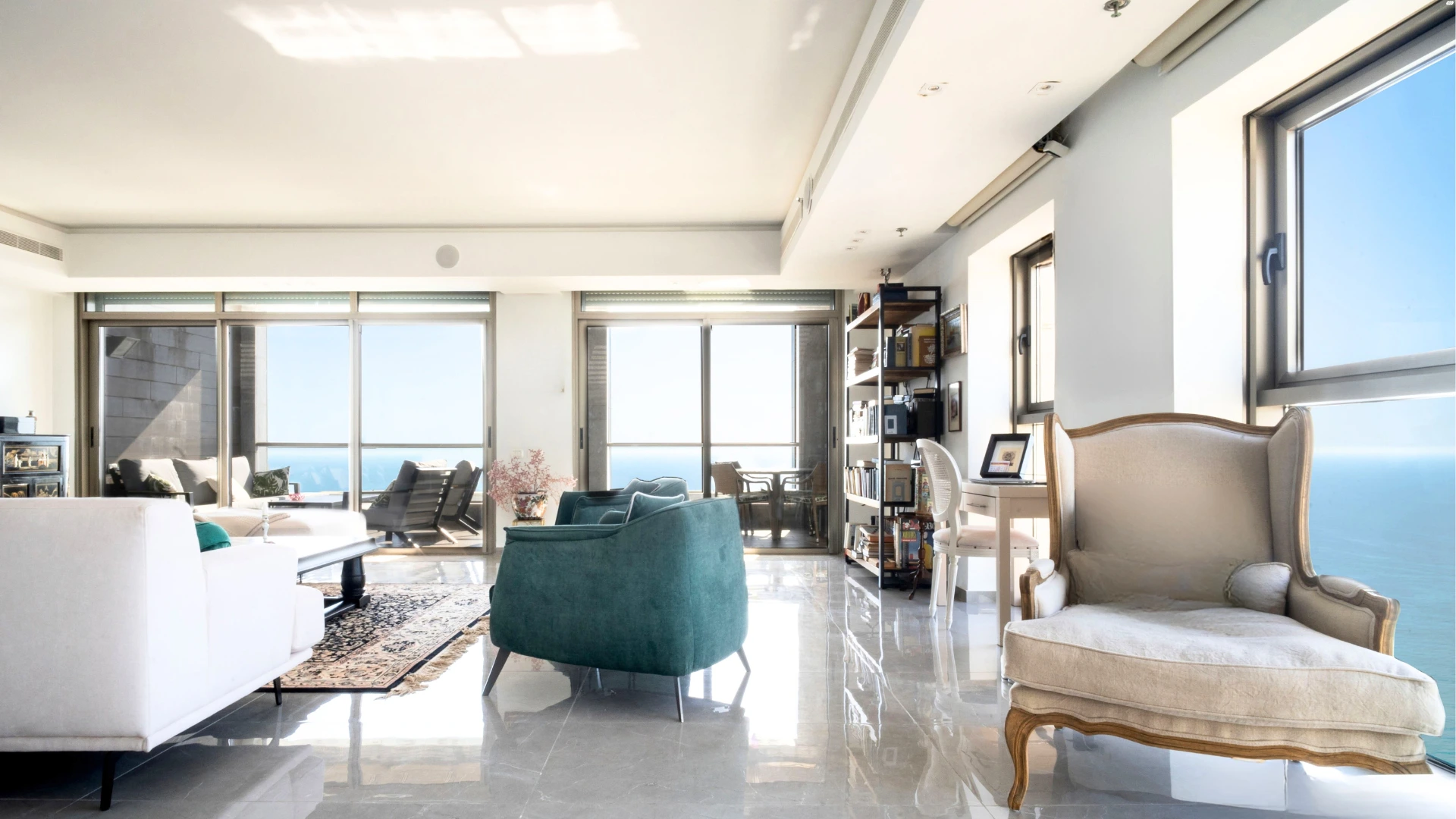 Incredible penthouse in prestigious Ir Yamim, boasting expansive balconies and sweeping sea views.